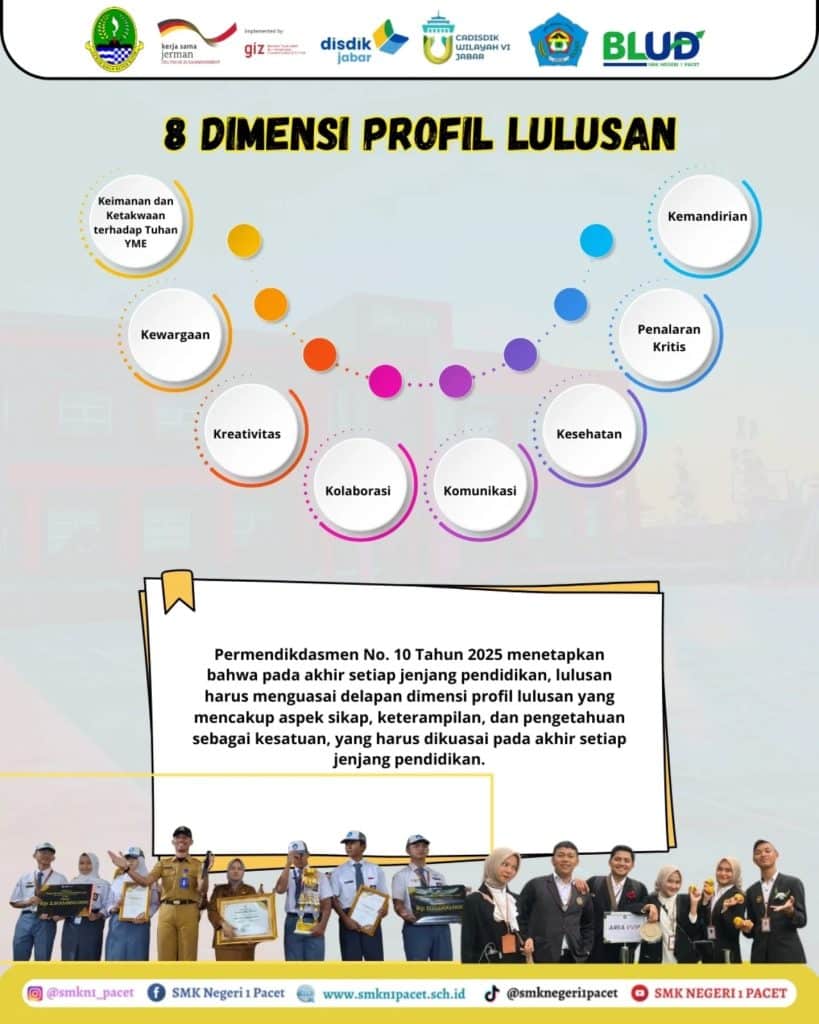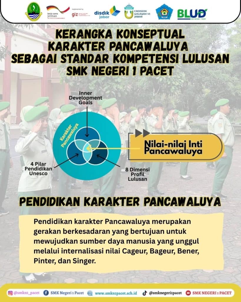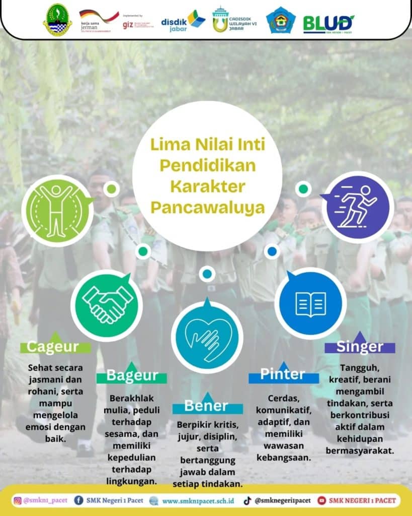 Di SMKN 1 Pacet, kami percaya bahwa pendidikan bukan hanya soal apa yang kamu tahu, tetapi siapa kamu ketika melangkah ke dunia. Karena itulah, kami menumbuhkan Karakter Pancawaluya sebagai standar kompetensi lulusan.